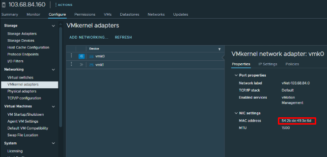 3. Lỗi khi bị trùng MAC ở vmk0 MNGT
