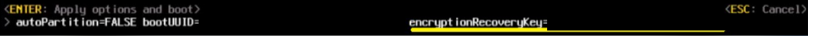 Sau đó gõ lệnh encryptionRecoveryKey=” Nhập key đã lấy ở đoạn SSH”. Lưu ý không xóa đoạn phía trước nhứ hình