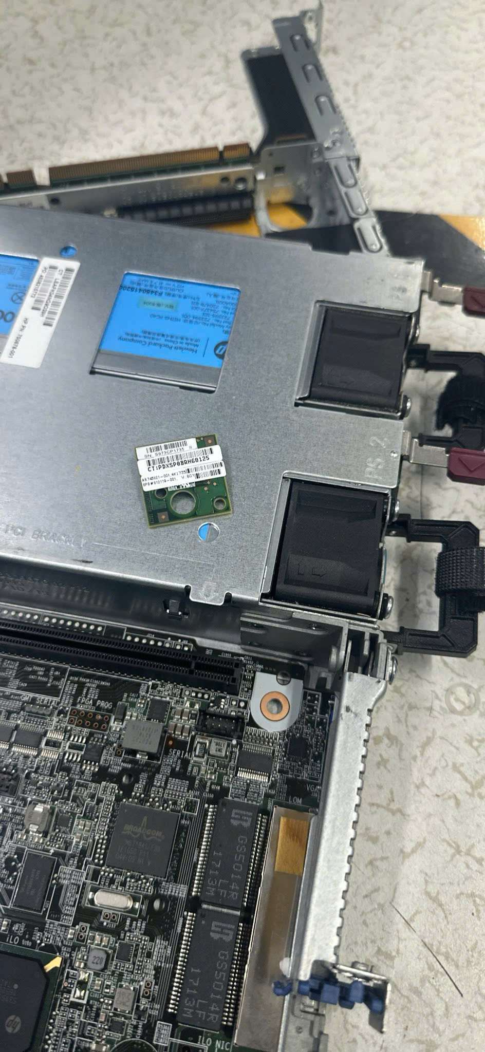 Để sữa lỗi này ta thay chip ram và module TPM từ server qua server, module TMP trên HP nằm sát pin cmos và cho hình như sau: