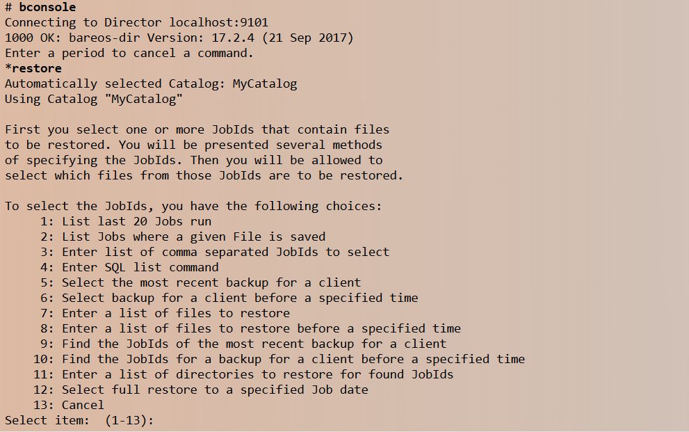 – Truy cập bconsle để tiến hành restore: