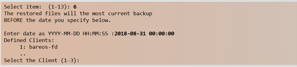 Chọn option 6: rồi nhập thời gian cụ thể của jobid muốn restore
