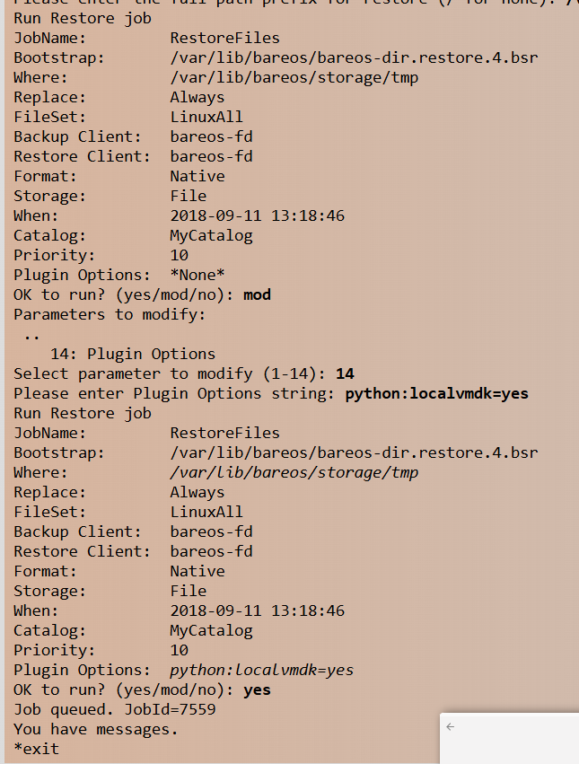 1. Restore trên BareOS, để lấy file vmdk: